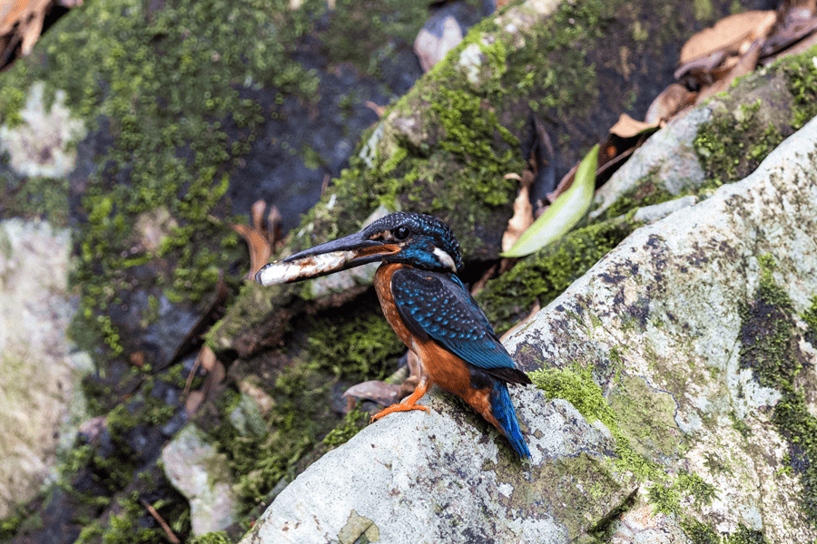 A Blyth's kingfisher, a species under second-class state protection in China, catches fish at a mountain creek in Mingxi county, Sanming city, southeast China's Fujian Province. (Photo/Jiang Yuelan)