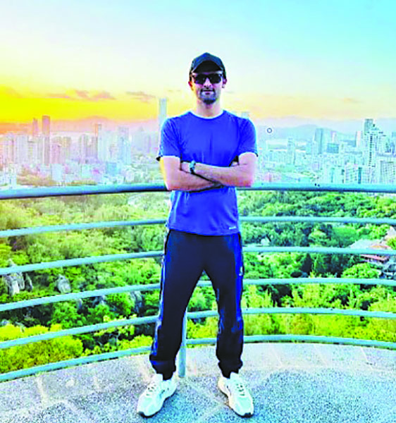 Muhammad Mudassar poses at Xiamen Botanical Garden. [Photo provided to China Daily]