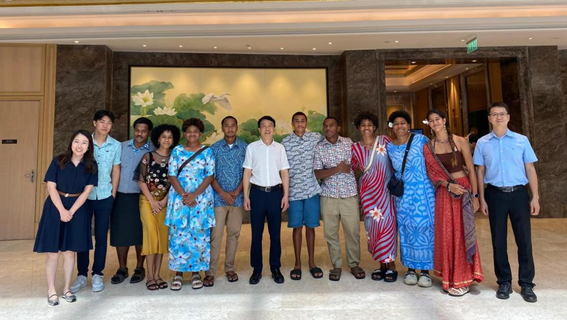 29日中午,省外办党组成员、副主任陈国全在福州会见了研习营学员代表团。陈国全代表省外办对代表团访闽表示欢迎,着重介绍了福建的经济社会发展,以及近年来福建与斐济在高层往来、减贫发展、菌草农业、国际友城、教育文旅等领域的交流合作情况。他诚挚邀请研习营学员来闽留学深造,寄语斐济青年成为中斐两国友好交往的使者,推动两国各领域交流合作,增进相互了解,造福两国人民。