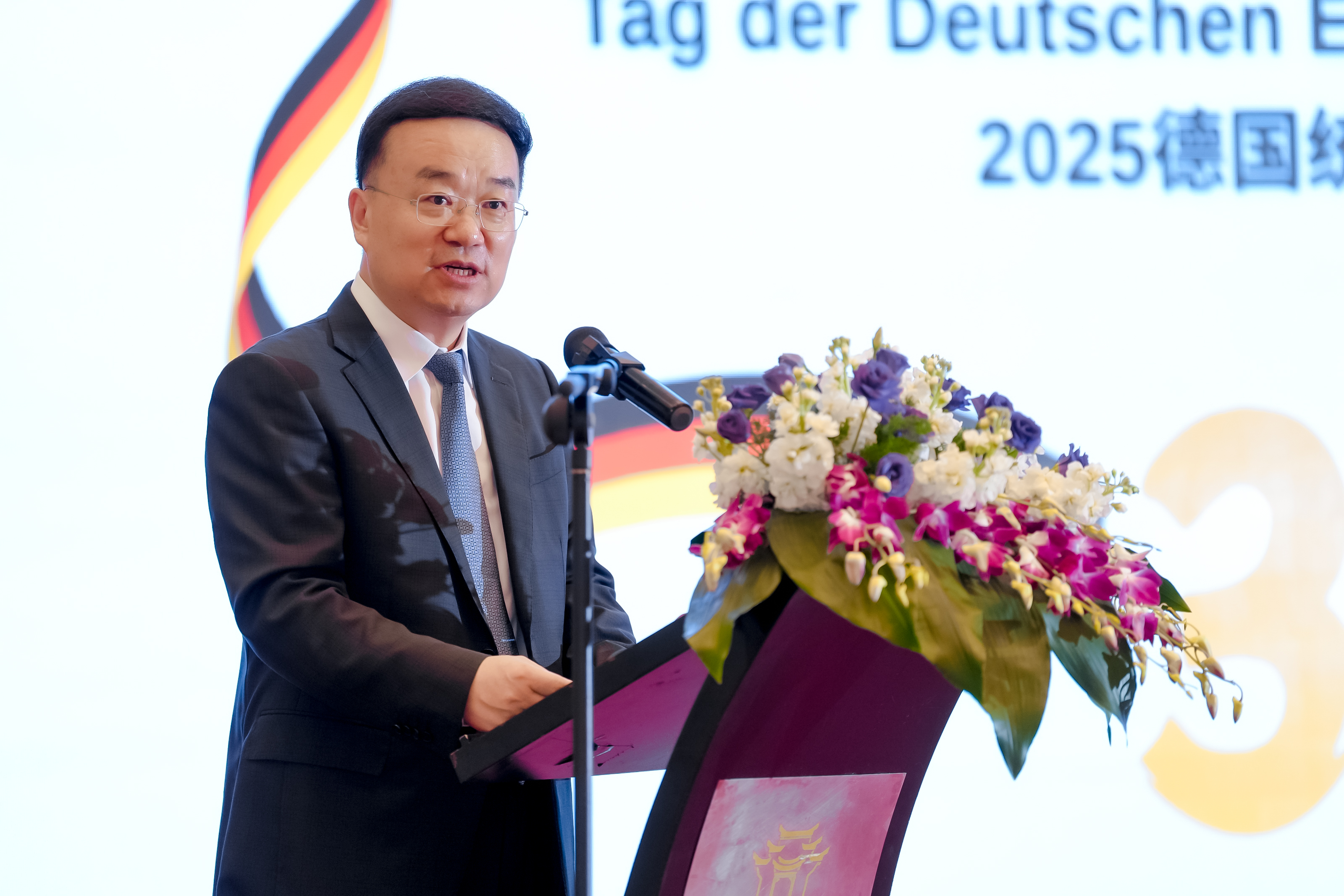今年是德国统一35周年,王金福代表省委、省政府向德国驻广州总领事馆及在闽德国朋友表示祝贺。他表示,中德是全方位战略伙伴,习近平主席高度重视中德关系发展。近年来,福建与德国地方在经贸投资、友城交往、人文交流等领域取得丰硕成果。德国是福建在欧洲最大贸易伙伴、第二大投资目的地,两地民心相亲、产业互补,合作基础良好,发展空间广阔。面向未来,福建愿与德国地方共享发展机遇,持续深化经贸、产业、科技、教育、绿色发展等领域务实合作,进一步扩大友好交往,加强友城交流互动,搭建更多交往平台,更好促进文明互鉴、共同发展。