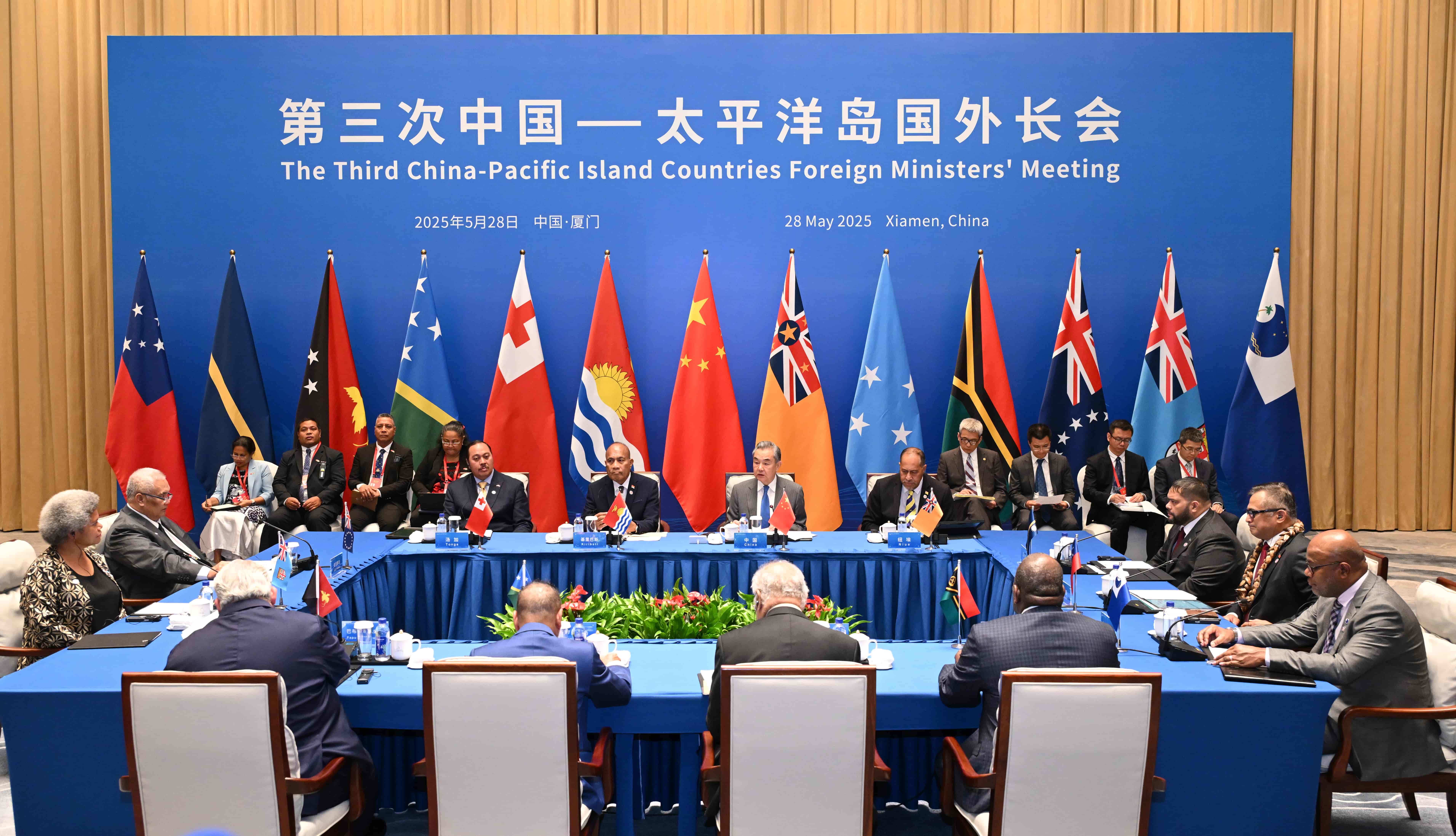 2025年5月28日,第三次中国—太平洋岛国外长会在福建厦门举办,王毅部长和与会代表进行多边会谈。