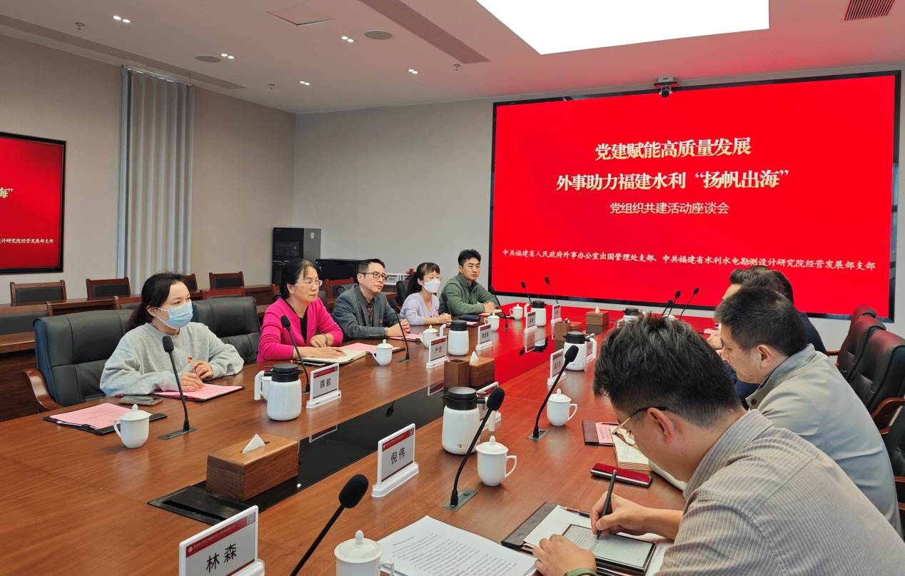 为深入学习贯彻党的二十届四中全会精神,贯彻落实习近平总书记在福建考察时的重要讲话精神,充分发挥党建引领作用,推动因公出国工作高质量发展,11月28日,省外办出国管理处党支部组织党员干部赴省水利水电勘测设计研究院有限公司(下称省水电院),同省水电院经营发展部党支部共同开展题为“党建赋能高质量发展,外事助力福建水利‘扬帆远航’”主题党日活动。省水电院党委书记陈久新同志全程参与本次活动。