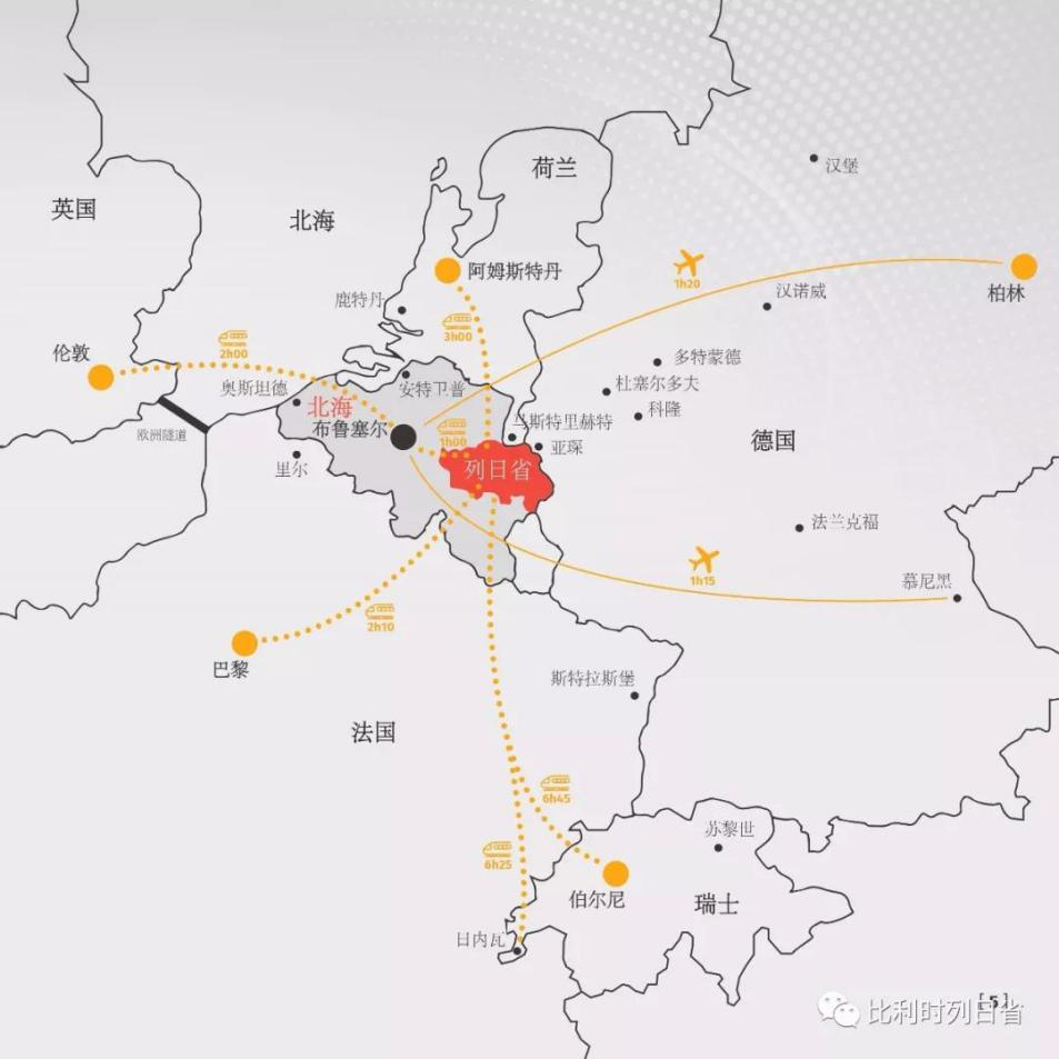 列日省位于比利时东南部,地处欧洲版图中心,人口约110万,与德国、荷兰、卢森堡接壤。首府列日市距荷兰仅30公里,距德国仅45公里。
